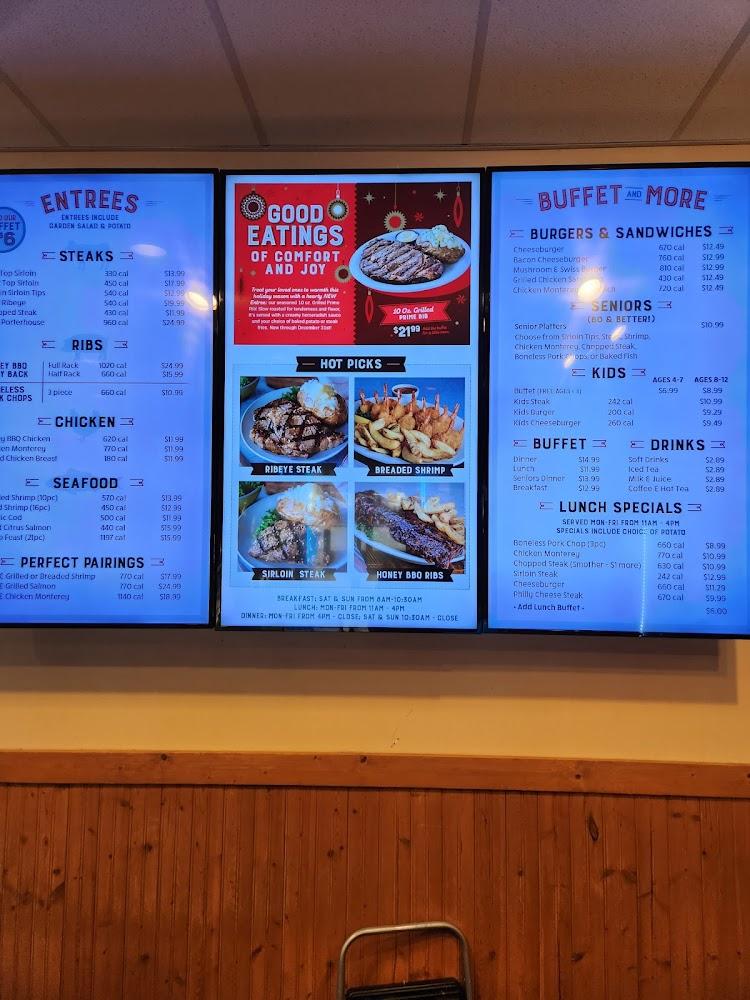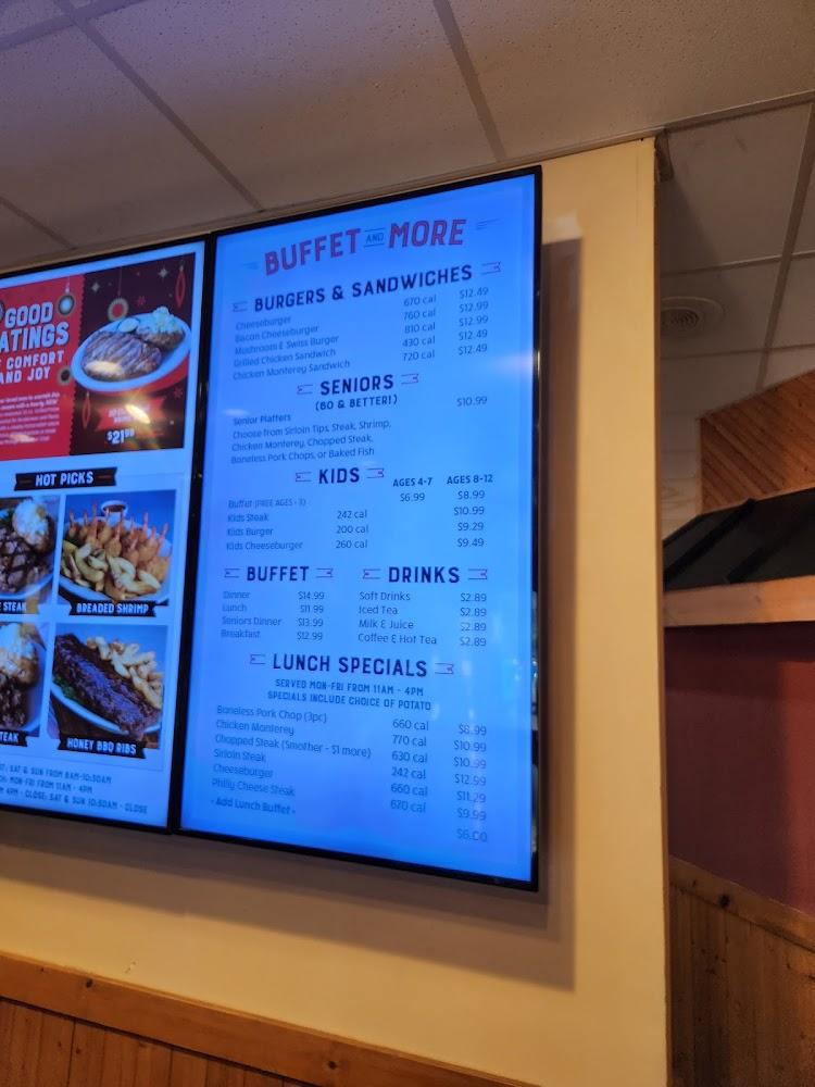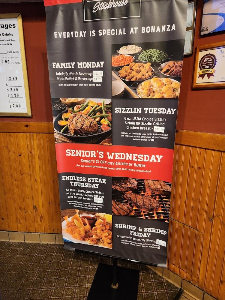 A buffet provides a plethora of options, appealing to various tastes. Sides include classics like mashed potatoes, macaroni and cheese, and coleslaw. Daily specials and desserts round out the menu, adding delightful finishing touches. Overall, the prices align well with the hearty portions, making Bonanza a satisfying stop.